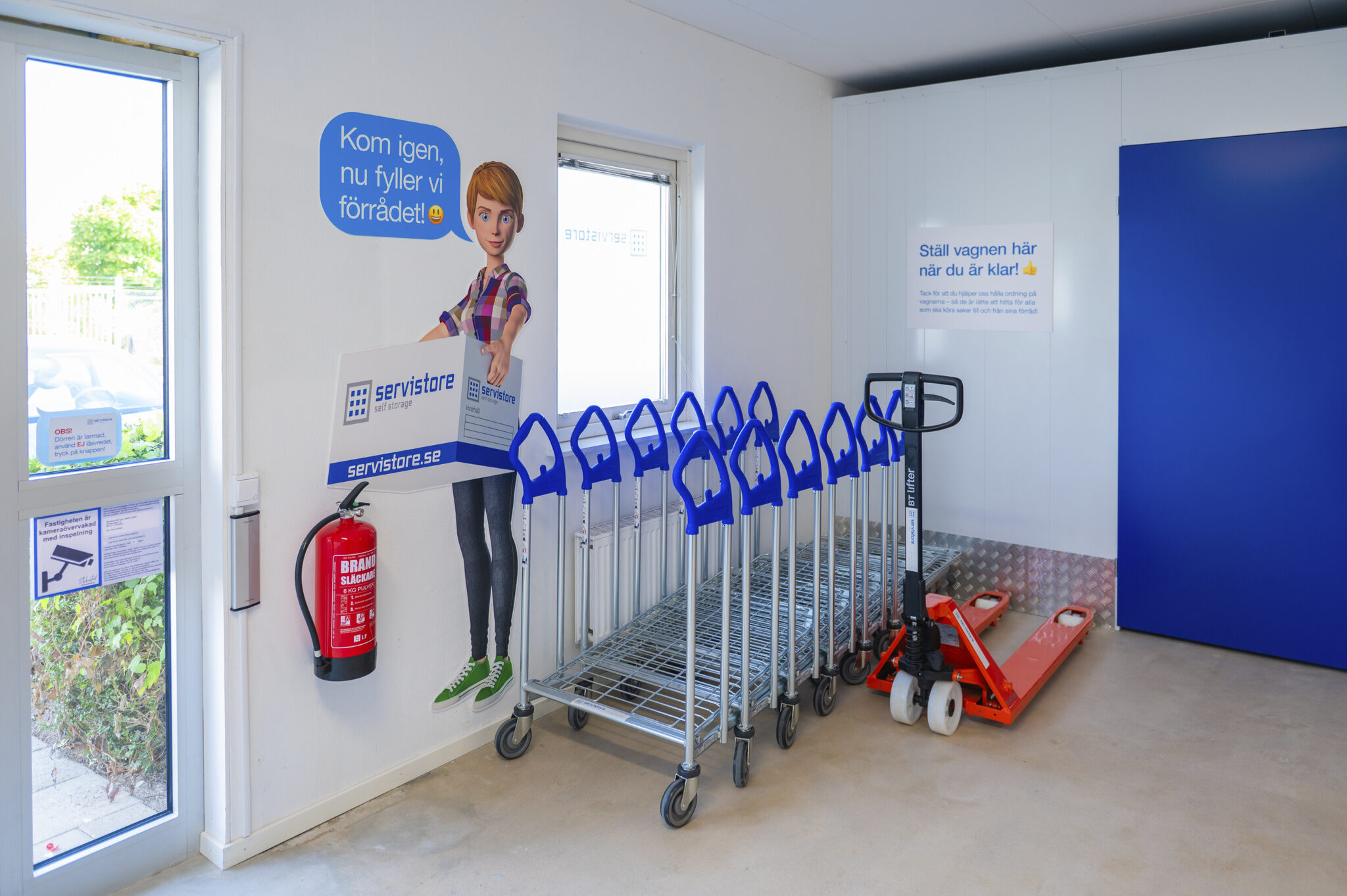 Du bokar enkelt förråd online och tillträder med hjälp av modern teknik och hög säkerhet, när det passar dig. Det finns lastvagnar på anläggningen och vår support är tillgänglig måndag till söndag. Välkommen till Servistore!
